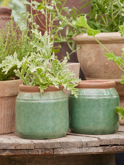 Pale Green Glazed Plant Pots With Handles - *Local Delivery or Local Pick Up Only*