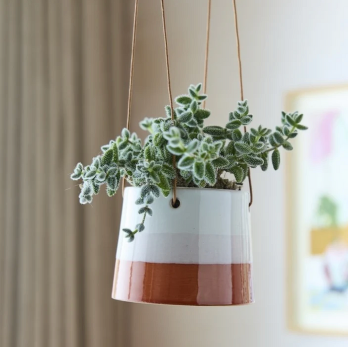 • Red Stripe Hanging Plant Pot