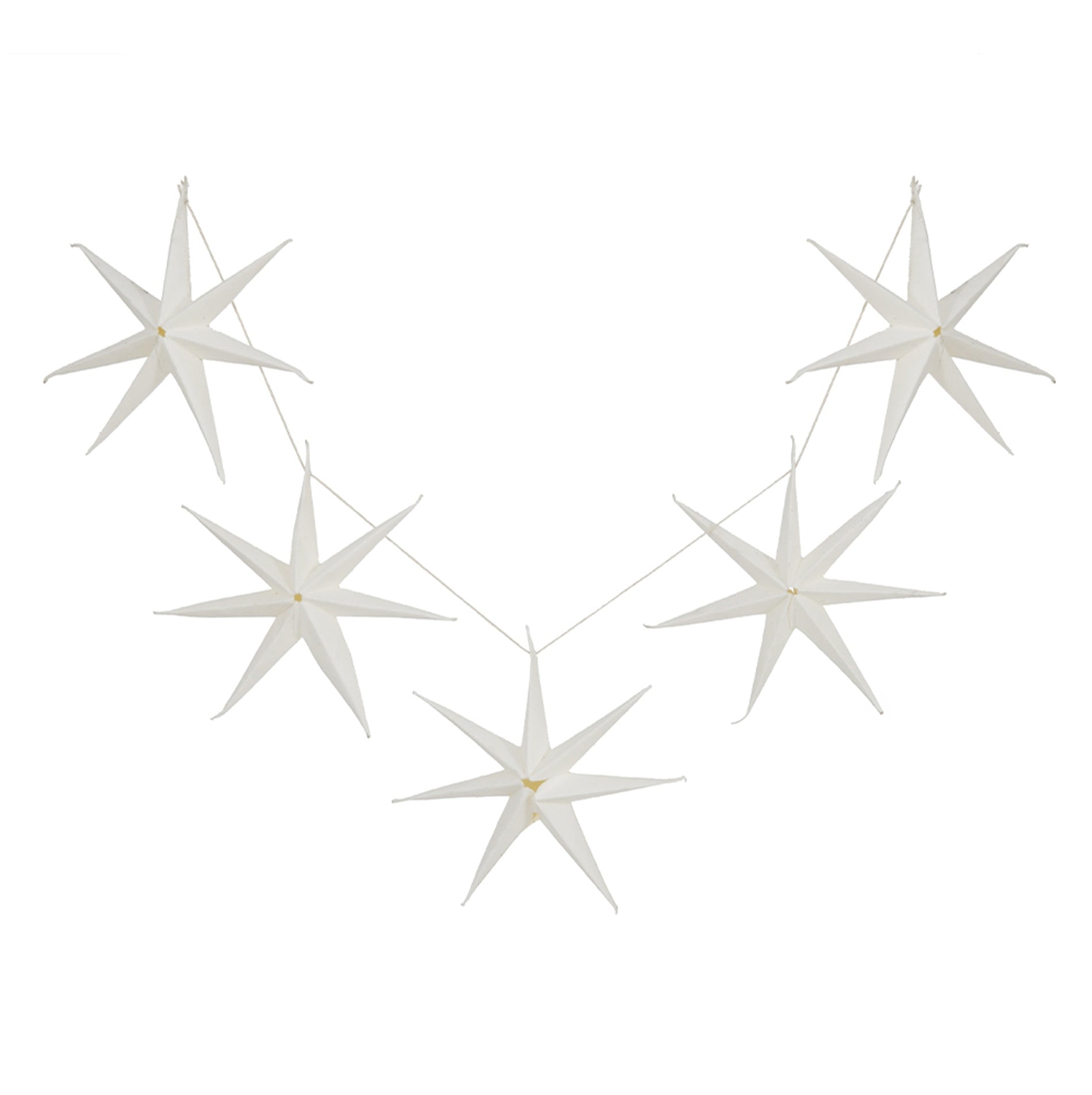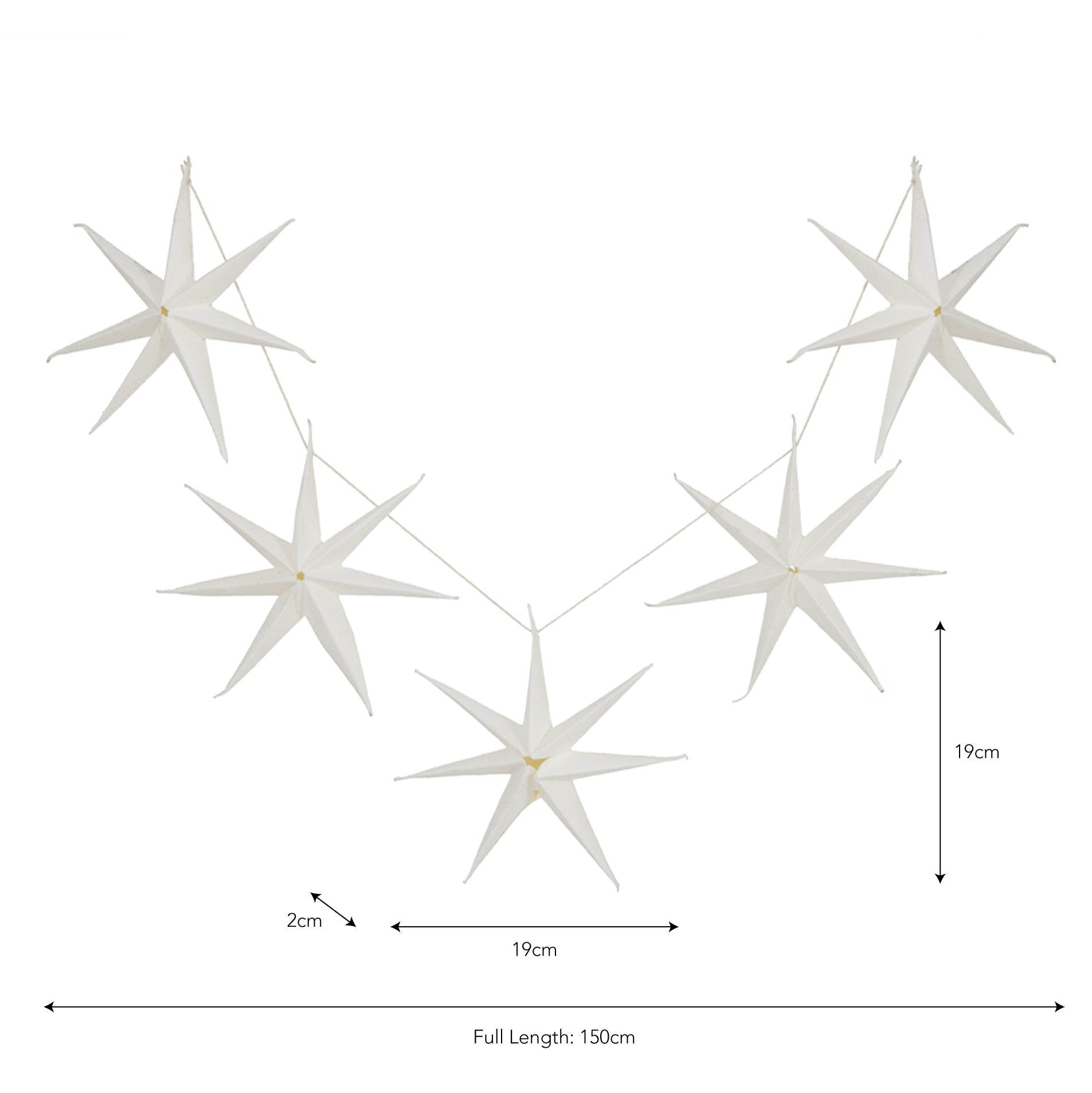 Go plastic free this year with this Star Garland, a Christmas decoration crafted in recycled pre-consumer cotton paper in stylish Warm White.