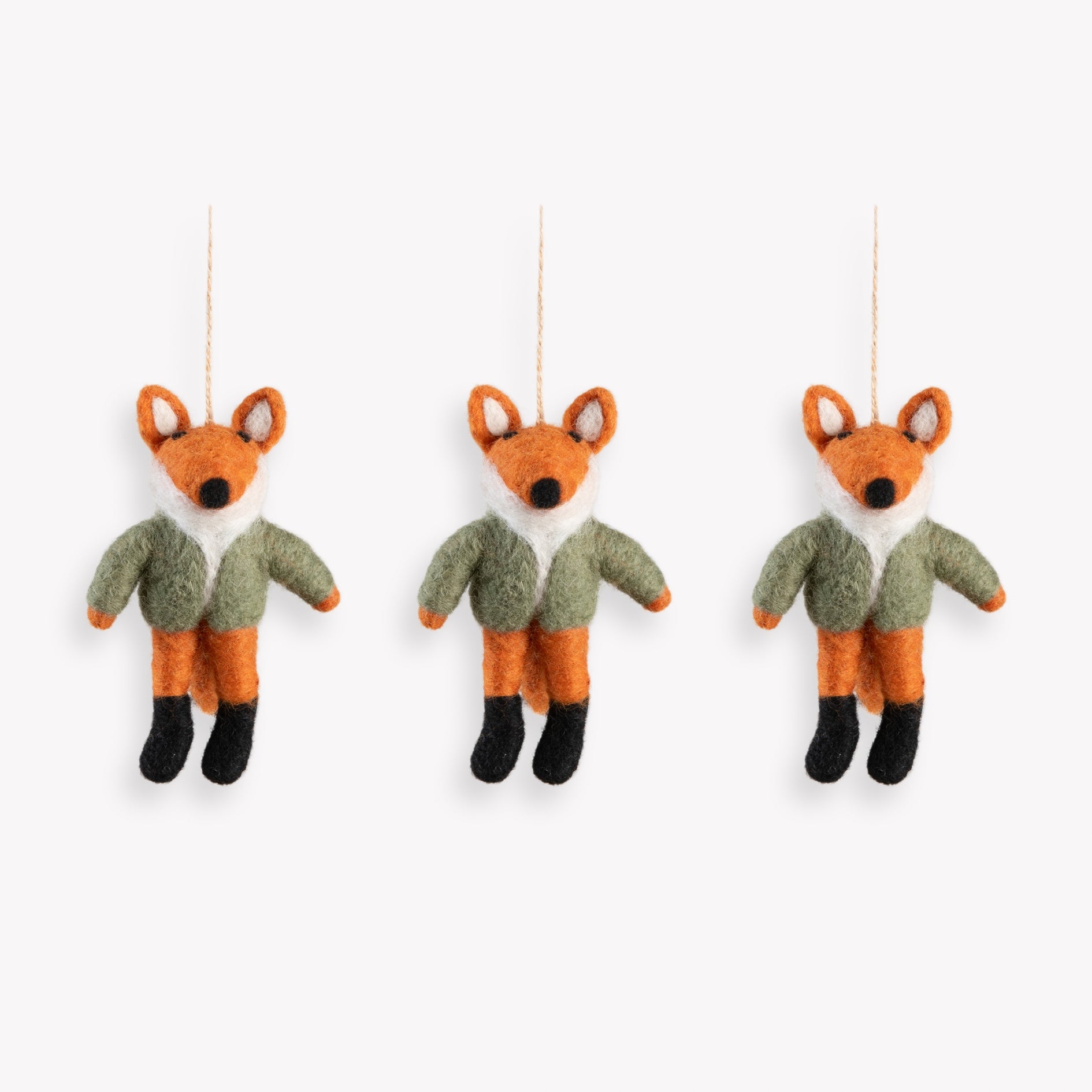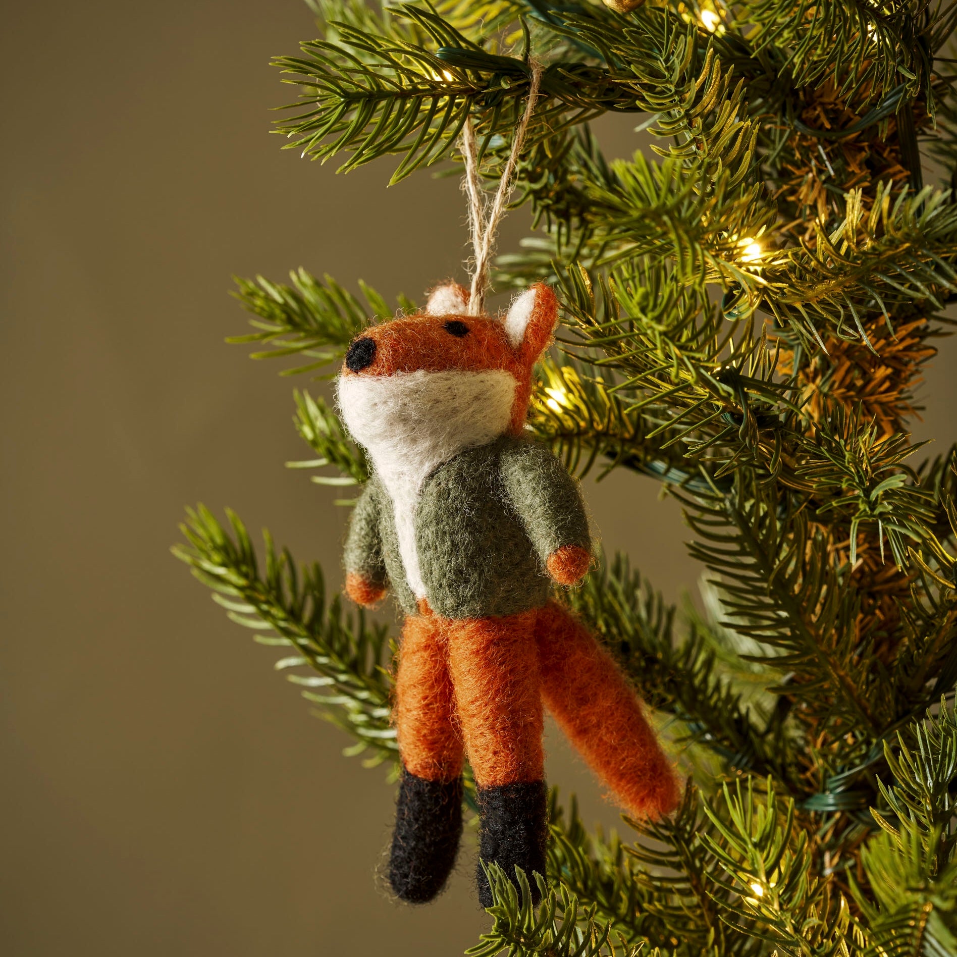 Bring rustic charm to your Christmas tree with a felt Fox decorations, which each have a jute hanging loop. With their rosemary green jackets and black boots, these smart foxes are dapper dressers, and would also be great for decorating door handles and cupboard door knobs around the house. Team them with our other felt decorations.